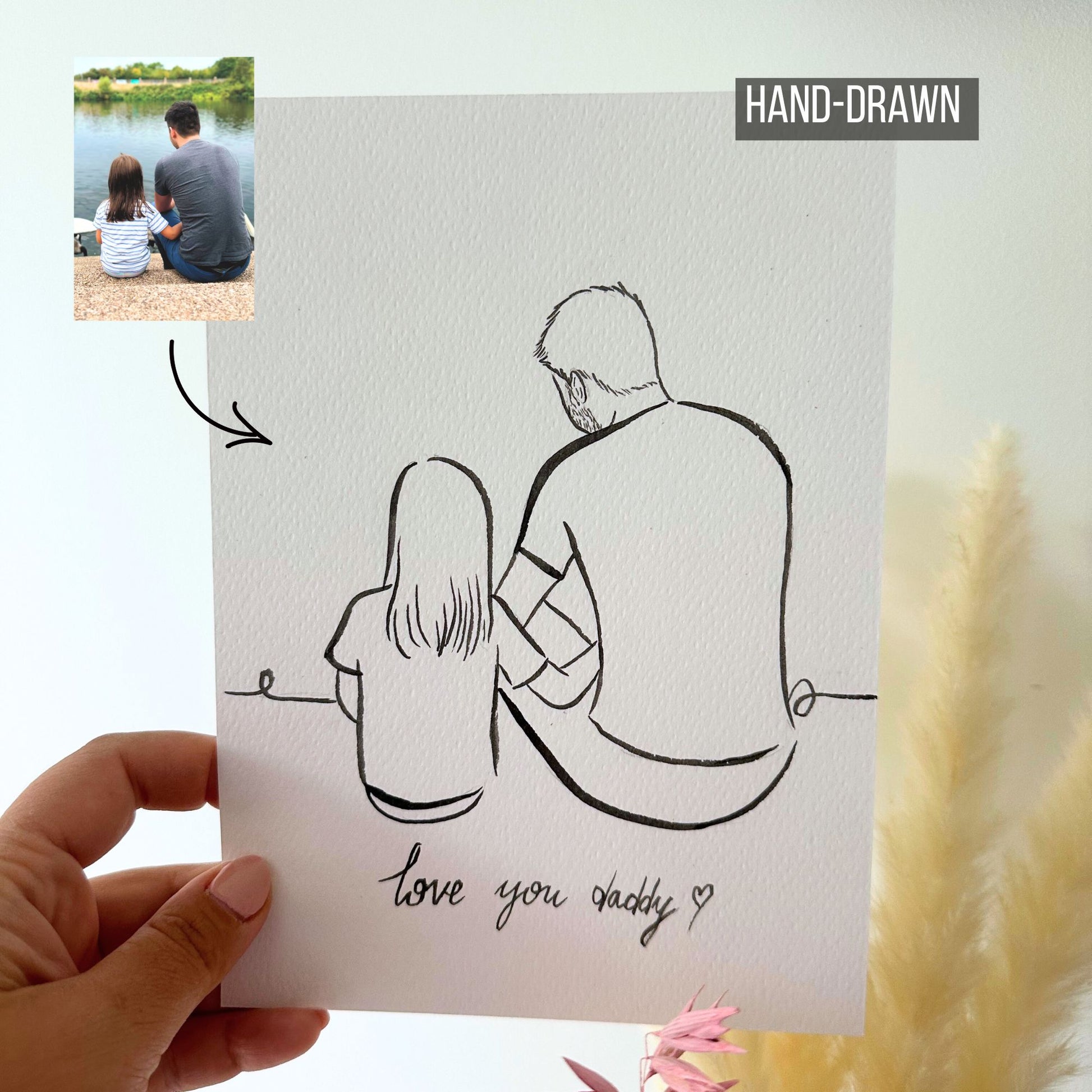 Celebrate the special bond between father and child with a timeless hand-drawn line art portrait. Using your photo as reference, I create a unique, faceless illustration that captures the love, warmth, and connection in a beautifully minimal style.