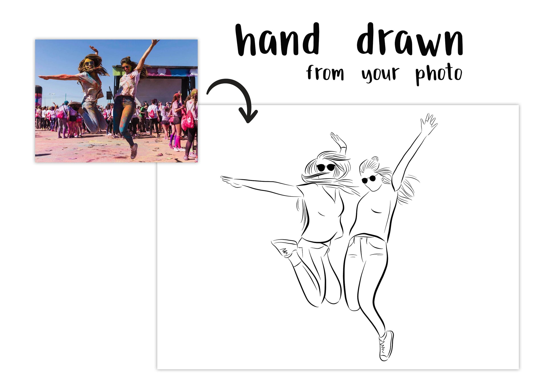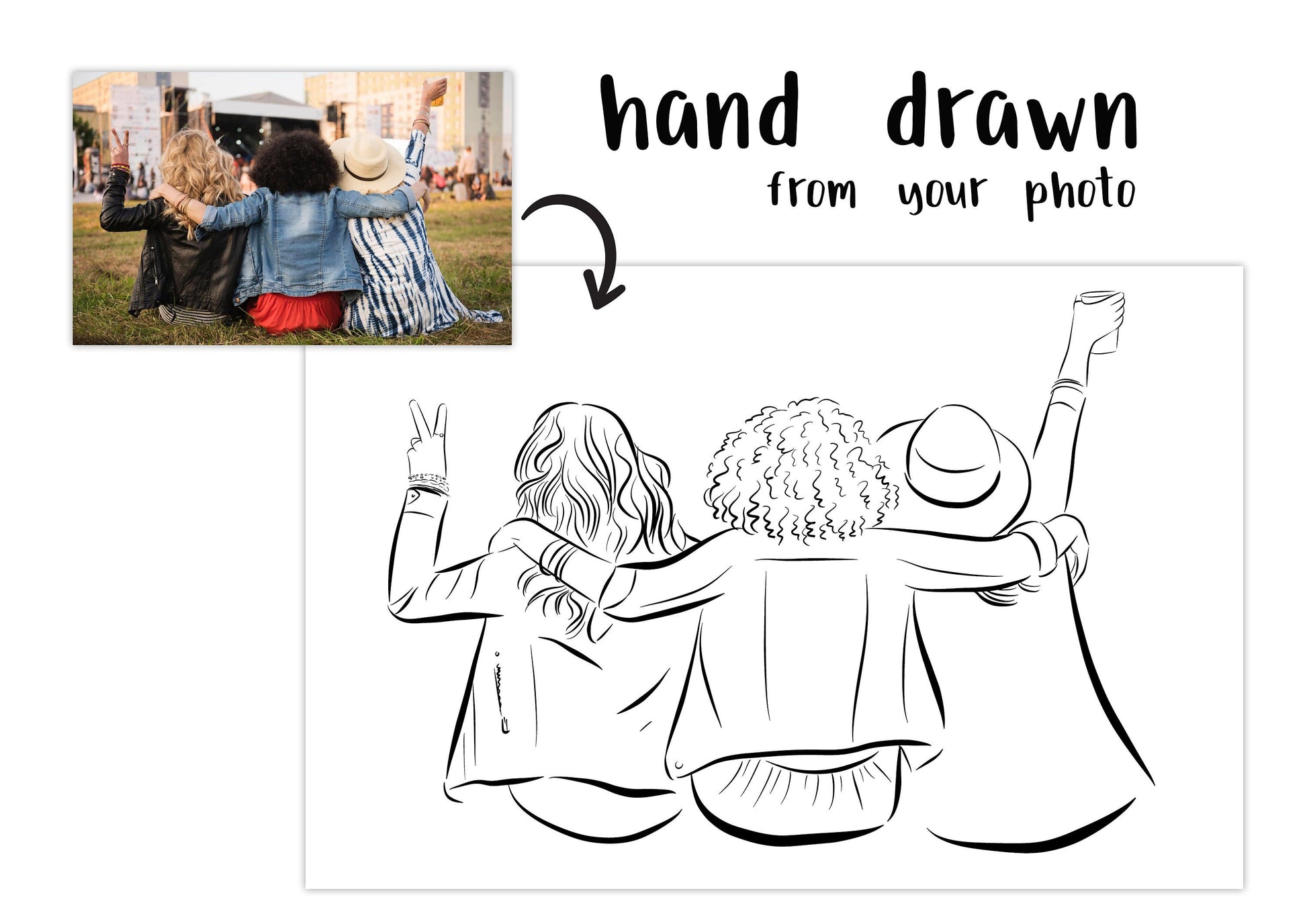 This bespoke illustration is the perfect long distance gift for your bestie! Please note that this is a 'no face' illustration, so no face features will be drawn, except for accessories such as sunglasses, hair bands, ribbons. If you wish to have a more detailed illustration (face included) please check out this product instead.