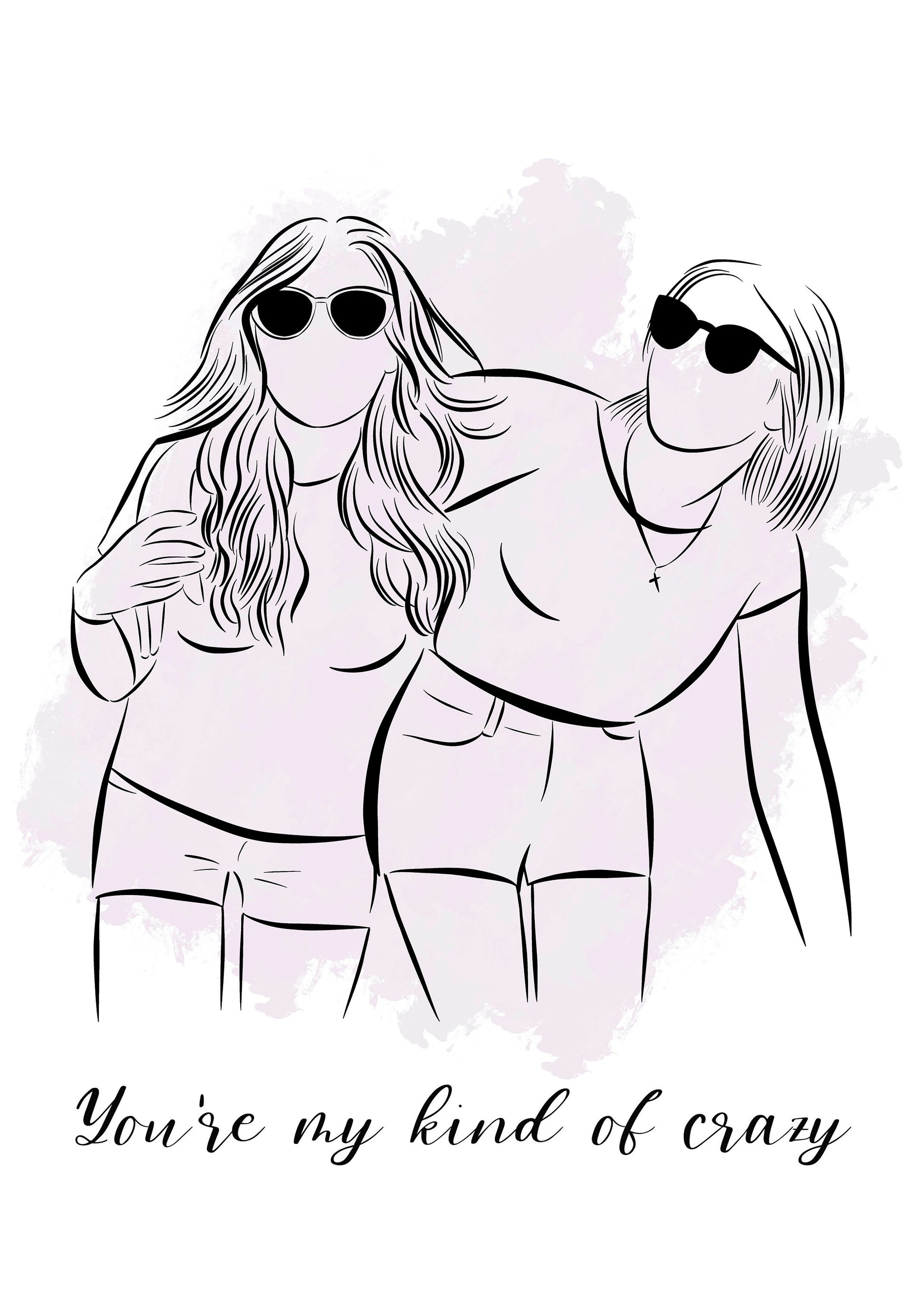 This bespoke illustration is the perfect long distance gift for your bestie! Please note that this is a 'no face' illustration, so no face features will be drawn, except for accessories such as sunglasses, hair bands, ribbons. If you wish to have a more detailed illustration (face included) please check out this product instead.