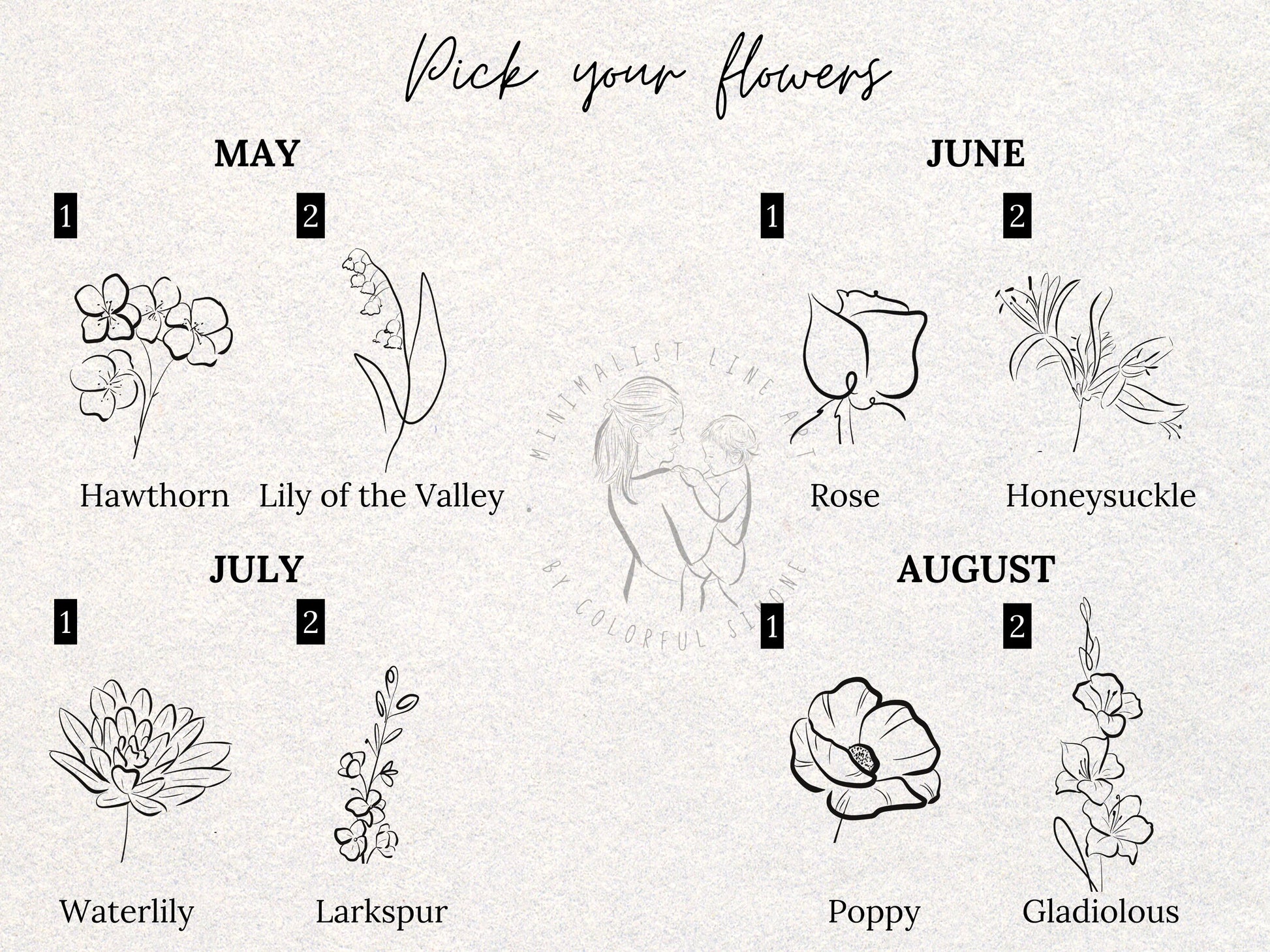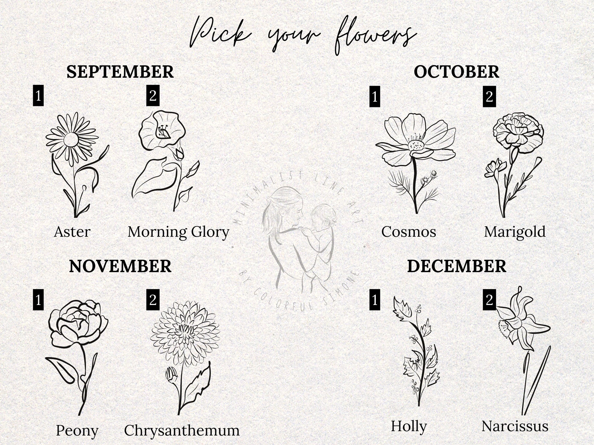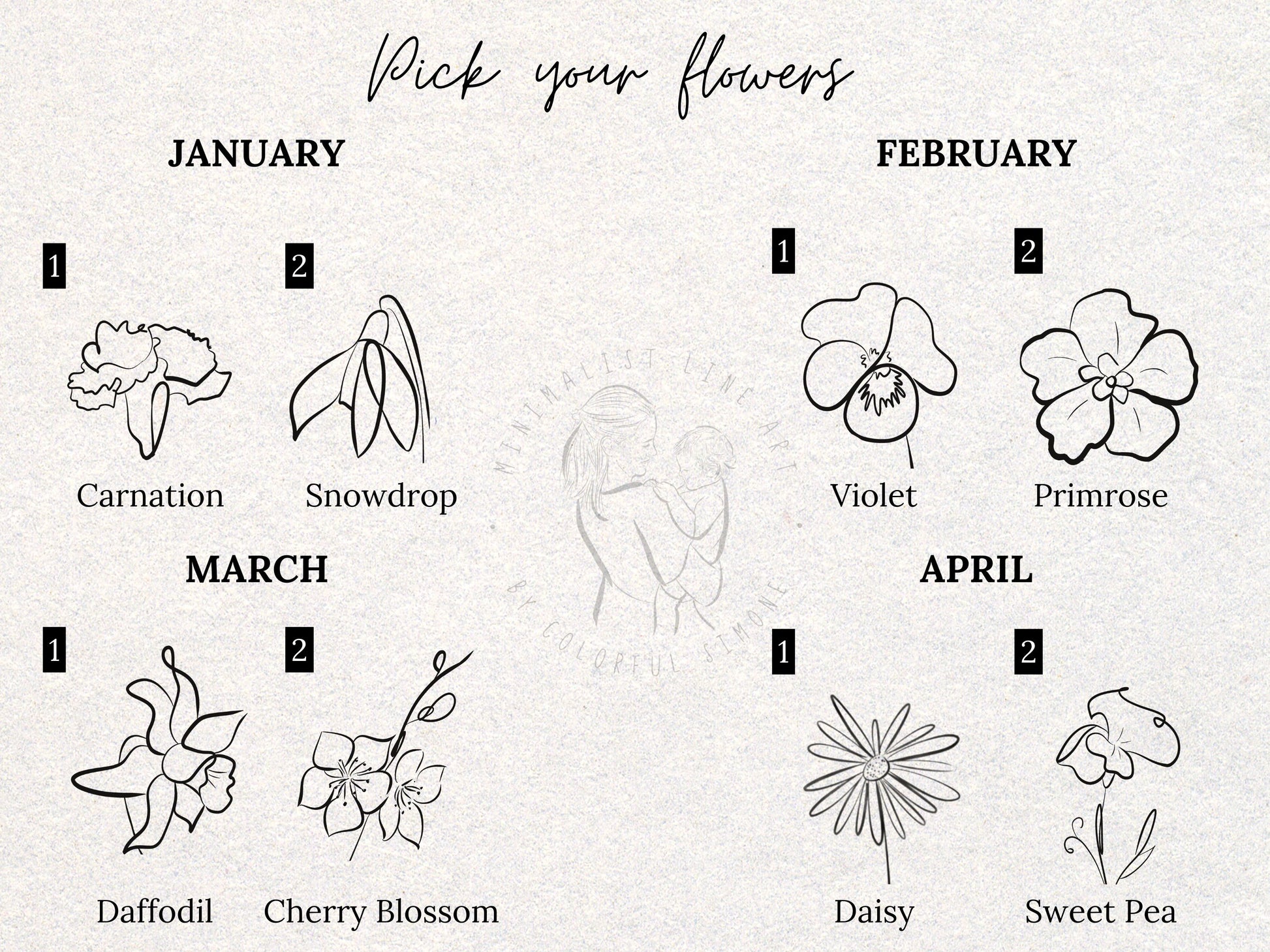 Each flower has been digitally hand-drawn by Simone, inspired by the real shapes and structures of each bloom. With two flower options for each birth month, you can create a completely unique arrangement offering you more customisation to suit your preference.