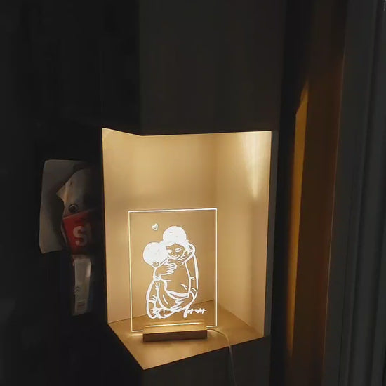 Celebrate the special bond between mother and child with a one-of-a-kind, minimalist line art portrait from photo on a clear acrylic A5 plaque USB LED base Light. Perfect for Mother’s Day, birthdays, Christmas, or any special occasion, this custom artwork captures the essence of your most cherished moments. Each portrait is digitally hand-drawn from your photo, transforming your memory into a timeless piece of art.