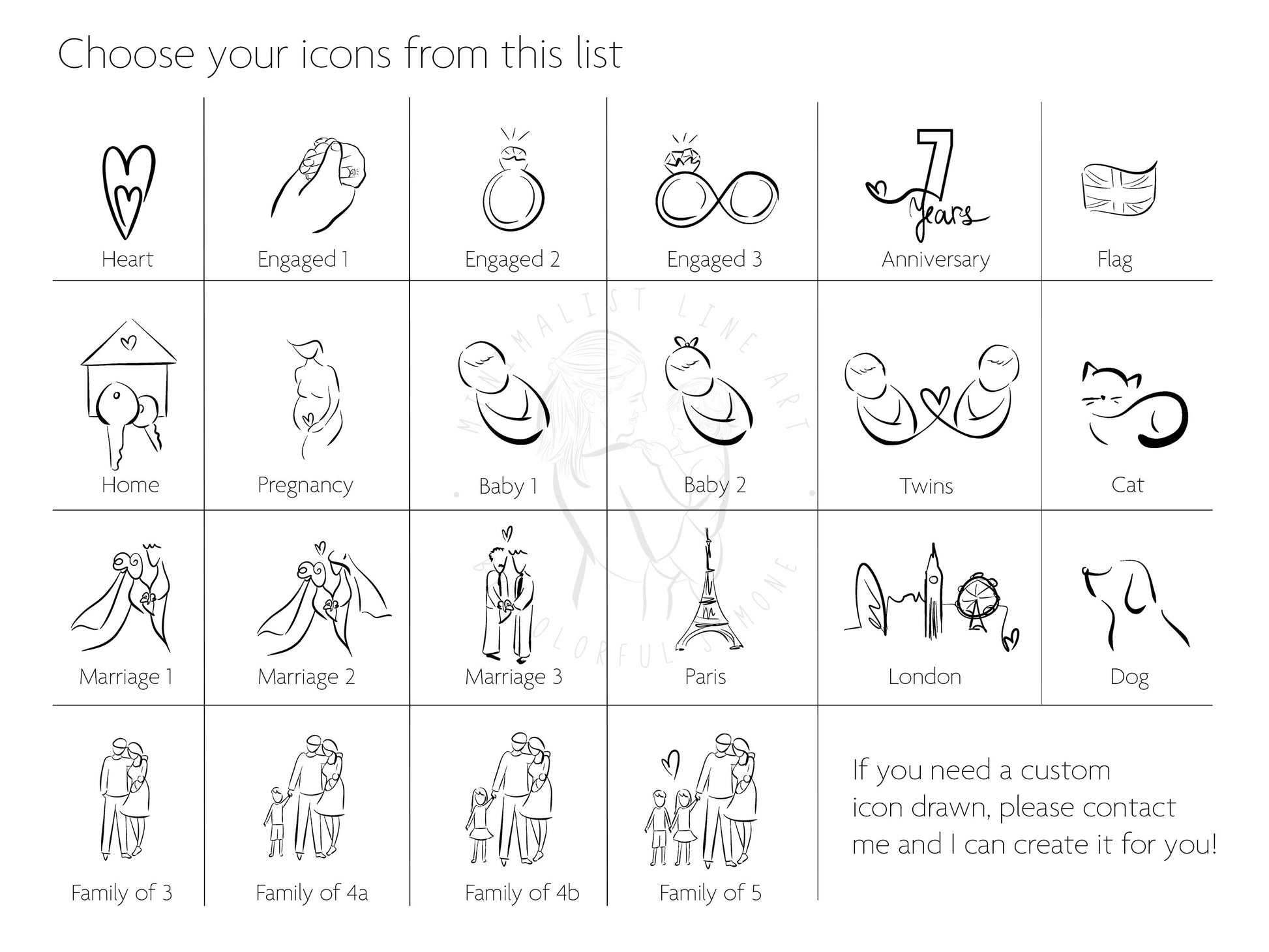You can choose from a variety of icons. If there's a specific icon you need, get in touch and we can create it for you.