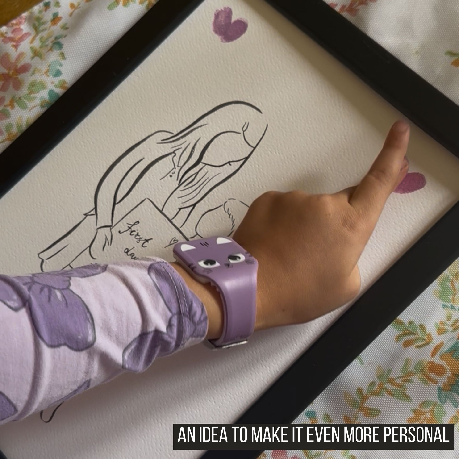 💡 To make it even more personal, you can let your child add their own creative touch once the artwork arrives. Using a safe ink pad or a little paint, they can press their tiny fingerprints onto the illustration, whether neat and simple or messy and playful! My daughter loved adding her own fingerprints, and now this keepsake feels even more special and truly unique to her.