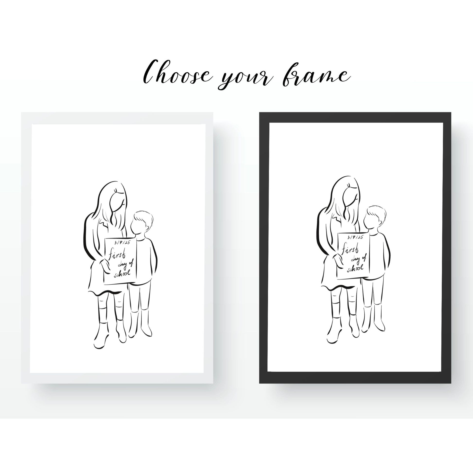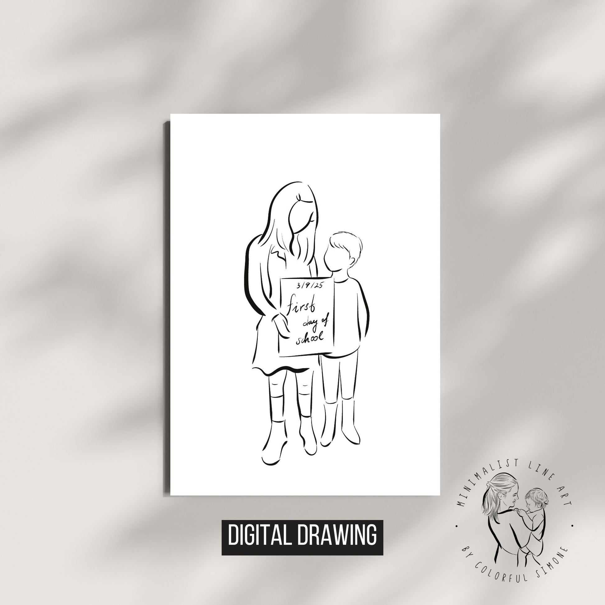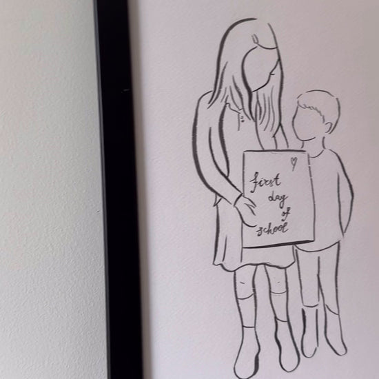 Celebrate the magic of your child’s very first day of school with a hand-drawn, faceless line art portrait. This custom artwork captures those sentimental back-to-school memories in a modern and timeless way—whether it’s your little one standing proudly in front of the door, holding a “first day” sign, or wearing their brand-new backpack.